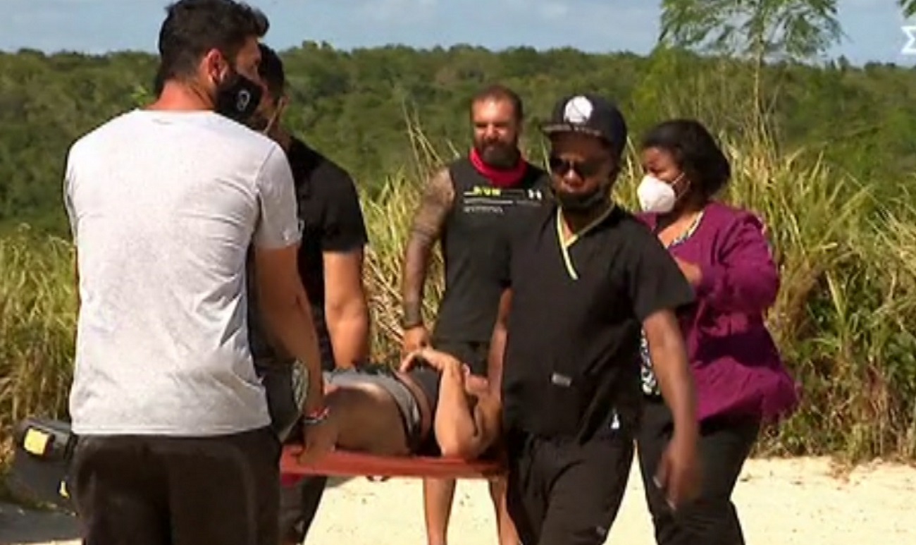 Συγκεκριμένα δύο παίκτες των ομάδων έπρεπε να κρατήσουν συγχρονισμό στο πως θα μετακινήσουν τον τρίτο παίκτη της ομάδας τους πάνω σε μία κατασκευή για να βάλουν οι τελευταίοι κορίνες σε τρύπες. Η Σοφία φαίνεται ότι ζορίστηκε ιδιαίτερα στο να κρατήσει ισορροπία κι αντίσταση κι έτσι είχε ένα σοβαρό τράβηγμα στο πόδι της που είχε χωθεί στην άμμο, δίχως να μπορεί να περπατήσει. Αμέσως στο πεδίο ήρθαν πρώτες βοήθειες για να εξετάσουν την κατάσταση και τελικά την παρέλαβαν με φορείο για να δούνε την κατάστασή της στο νοσοκομείο. Οι υπόλοιποι παίκτες κοιτούσαν σοκαρισμένοι αυτήν την εξέλιξη και που η Κόκκινη ομάδα θα είναι με έναν παίκτη λιγότερο.