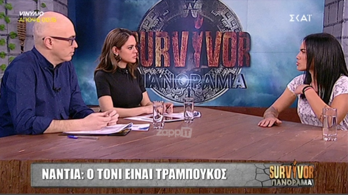 Η Νάντια Μαυρουδέα βρέθηκε σήμερα στο Survivor Πανόραμα και κλήθηκε να μιλήσει για τους πρώην συμπαίκτες της. Όταν η συζήτηση έφτασε στον Τόνι Σταυράτη, η Νάντια τον χαρακτήρισε ως τραμπούκο.