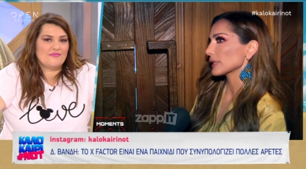 Νομίζω ότι έχει να κάνει με ένα σύνολο πραγμάτων και με ένα μεγαλύτερο βάθος το X Factor. Δεν υποτιμώ κανένα άλλο παιχνίδι, όλα είναι πολύ ωραία και όλα αναζητούν ωραίες φωνές. Αλλά αυτό ίσως έχει μια πιο διεισδυτική ματιά στο νικητή», είπε η Δέσποινα Βανδή.