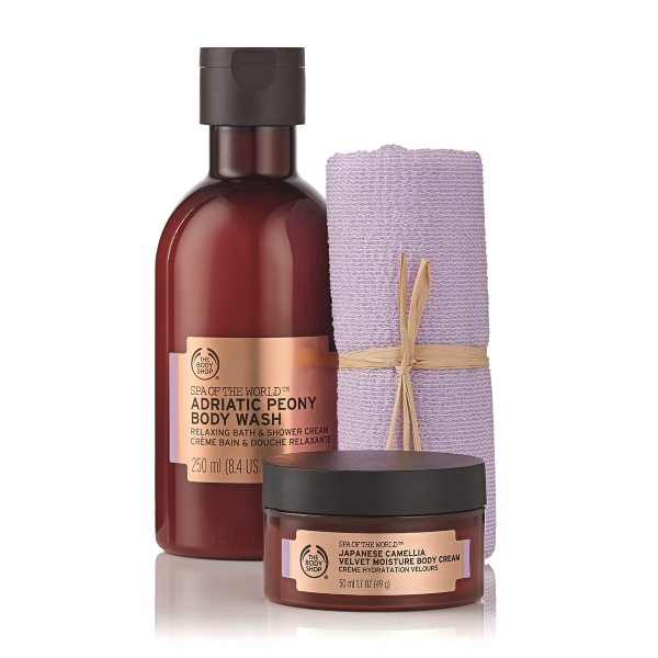 Spa od the World Relaxing Selection, €21.00, The Body Shop. Επειδή λίγη καθημερινή περιποίηση και χαλάρωση δεν είναι πολυτέλεια, χάρισε στα αγαπημένα σου πρόσωπα μια μοναδική ιεροτελεστία περιποίησης που μεταφέρει την ατμόσφαιρα ενός spa στο σπίτι! Αυτό το σετ δώρου περιέχει δύο προϊόντα από την σειρά μας Spa of the World™ καθώς και μία πετσέτα απολέπισης. Το αφρόλουτρο διαθέτει βελούδινη υφή και ένα ντελικάτο άρωμα παιώνιας που προσφέρει την αίσθηση μιας χαλαρωτικής απόδρασης από την καθημερινότητα. Η ενυδατική κρέμα σώματος είναι εμπλουτισμένη με έλαιο καμέλιας από την Ιαπωνία και ηρεμεί τις αισθήσεις χάρη στην πλούσια, μεταξένια υφή και το ντελικάτο, χαλαρωτικό της άρωμα. Ζεν!