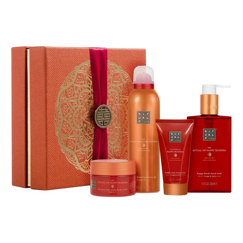 The Ritual of Happy Buddha, €29.95, Sephora. Μυρωδιές από ευκάλυπτο και δεντρολίβανο σε κάνουν να νιώθεις σαν… ευτυχισμένος Βούδας! Το σετ περιέχει αφρόλουτρο, προϊόν απολέπισης για το σώμα, κρέμα σώματος και σαπούνι χεριών.