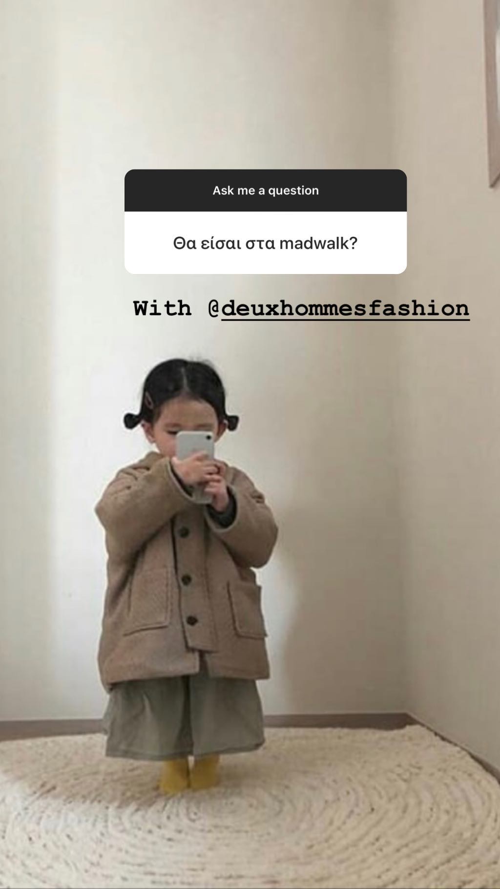 Η Ειρήνη Καζαριάν είναι λάτρης των social media και καθημερινά μοιράζεται με τους διαδικτυακούς της φίλους στο Instagram διάφορες στιγμές τόσο της προσωπικής όσο και της επαγγελματικής της ζωής. Σήμερα, θέλησε να επικοινωνήσει περισσότερο με τους followers της και έτσι τους ζήτησε να της κάνουν ερωτήσεις. Σε έναν λοιπόν από τα ερωτήματα, η νικήτρια του «GNTM» αποκάλυψε ότι στις 1 Απρίλη θα συμμετέχει στο Madwalk μαζί με τους Deux Hommes.