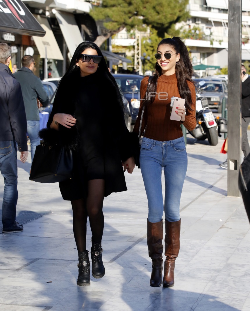 Η Ειρήνη φορούσε καφέ μπότες μέχρι το γόνατο, blue jean και καφέ μπλούζα ενώ η Μαρία διάλεξε ένα total black ντύσιμο. Πιασμένες χέρι χέρι έκαναν τις βόλτες τους στην περιοχή και τράβηξαν τα βλέμματα όλων όσων ήταν εκεί.