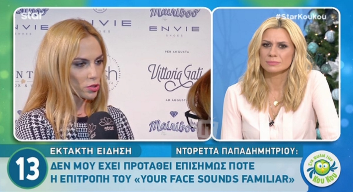 Για τη συμμετοχή της στο YFSF, λέει: «Δεν μου έχει προταθεί επισήμως ποτέ η κριτική επιτροπή του Your Face Sounds Familiar. Θα την σκεφτόμουν μια τέτοια κίνηση αλλά δεν μου έχει γίνει».