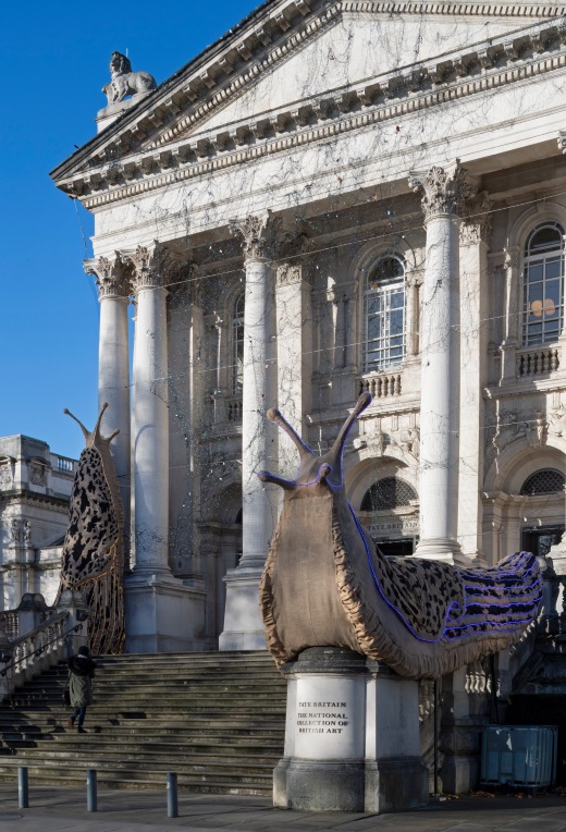 Τα μεγαλύτερα πολιτιστικά ιδρύματα του κόσμου έχουν πλέον “φορέσει” τους εορταστικούς στολισμούς τους, κάνοντας τις μητροπόλεις να πλημμυρίζουν με χριστουγεννιάτικη ατμόσφαιρα! Το Λονδίνο, όμως, που παραδοσιακά γιορτάζει με φαντασμαγορικό και μαγικό τρόπο τα Χριστούγεννα, “στολίστηκε” φέτος και με ένα εντελώς διαφορετικό στυλ. Συγκεκριμένα, το διεθνούς φήμης και αξίας μουσείο Τεχνών, Tate Britain, αποφάσισε να ξεχωρίσει από το σύνολο και να αναθέσει τον χειμερινό στολισμό του στην Βρετανή καλλιτέχνιδα Alalia (Monster) Chetwynd. Τολμηρή και ταυτόχρονα λαμπρή επιλογή, μιας και η Monster έκαλε την ανατρεπτική επιλογή να στολίσει την είσοδο του κτιρίου με δύο τεράστιους γυμνοσάλιαγκες, οι οποίοι αφήνουν το λαμπυρίζον “σάλιο” τους σε όλη την εμβληματική πρόσοψη της Tate που χρονολογείται από τον 19ο αιώνα!