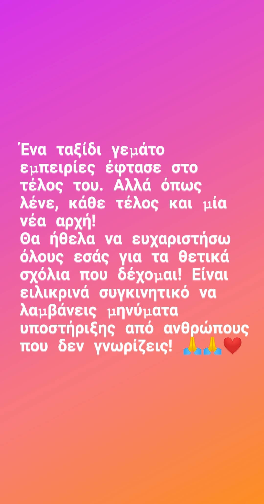 Λίγη ώρα μετά την προβολή του επεισοδίου, η Σίλια έκανε… comeback στο Instagram. Μάλιστα, μέσα από τα instastories της έστειλε το πρώτο της μήνυμα μετά την αποχώρησή της από το reality μόδας του STAR. Αρχικά, δημοσίευσε μια φωτογραφία της με μαγιό σχολιάζοντας: «Happy End«, ενώ στη συνέχεια έγραψε χαρακτηριστικά: «Ένα ταξίδι γεμάτο εμπειρίες έφτασε στο τέλος του. Αλλά όπως λένε, κάθε τέλος και μία νέα αρχή. Θα ήθελε να ευχαριστήσω όλους εσάς για τα θετικά σχόλια που δέχομαι. Είναι ειλικρινά συγκινητικό να λαμβάνεις μηνύματα υποστήριξης από ανθρώπους που δεν γνωρίζεις» .