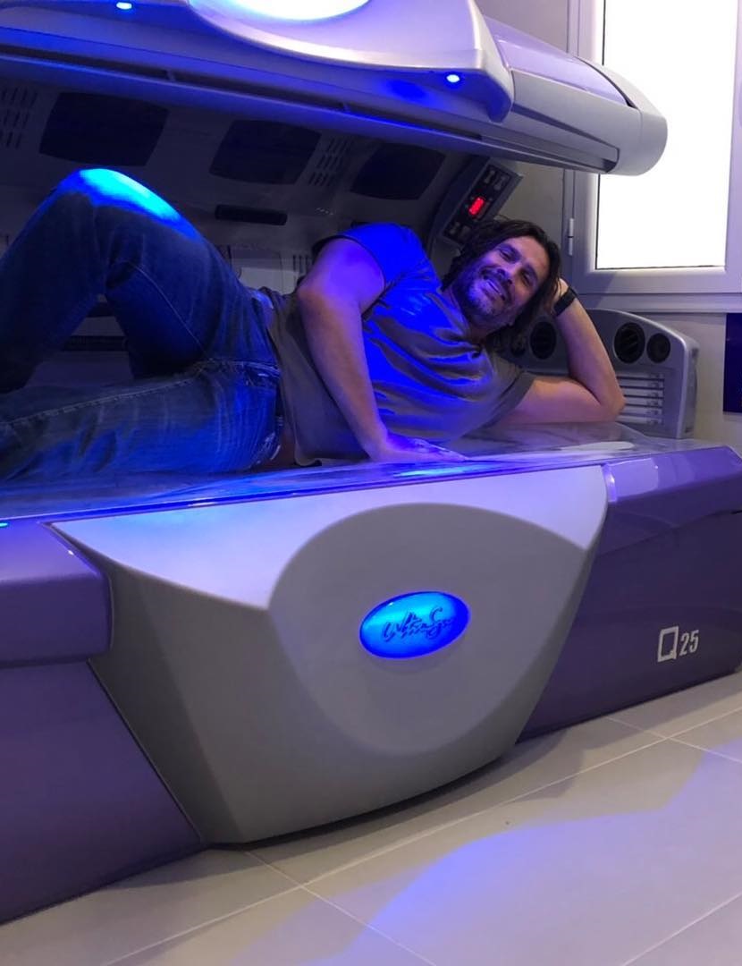 Μάλιστα, ποδαρικό έκανε ο Κώστας Κοκκινάκης, ο συμπαίκτης του από το «Survivor«, διαφημίζοντας με τον καλύτερο τρόπο τη δουλειά του φίλου του. Ο γοητευτικός πολίστας φωτογραφήθηκε ξαπλωμένος μέσα σε ένα από τα μηχανήματα solarium, ενώ και η σύζυγος του Στέλιου, Όλγα Πηλιάκη, πόζαρε κάνοντας σπαγκάτο σ’ ένα από αυτά.